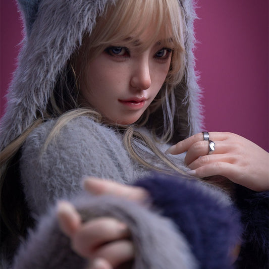 Freya - Muñeca sexual felina de 168 cm con ojos azules y areolas rosas y copa C