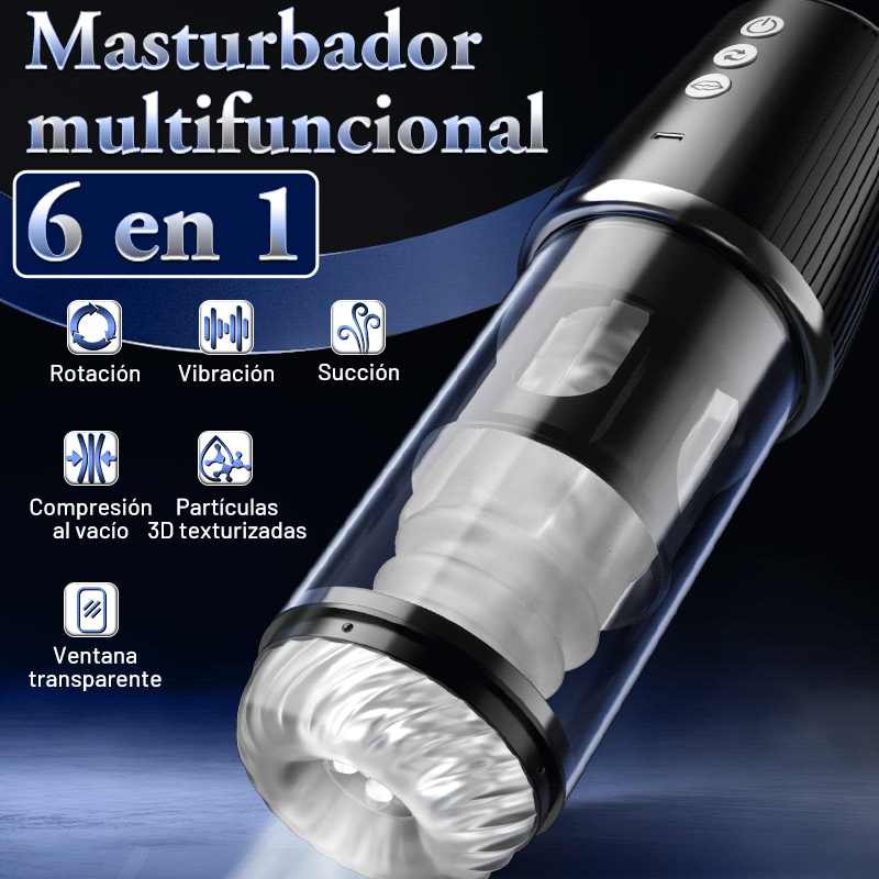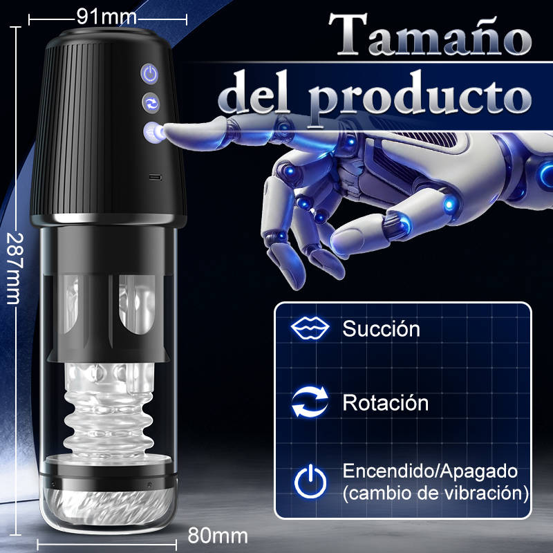 Ofrece una variedad de experiencias placenteras, incluyendo 5 modos de rotación, 5 modos de succión, 7 modos de vibración, sujeción neumática, estimulación con partículas 3D y un diseño de ventana transparente.