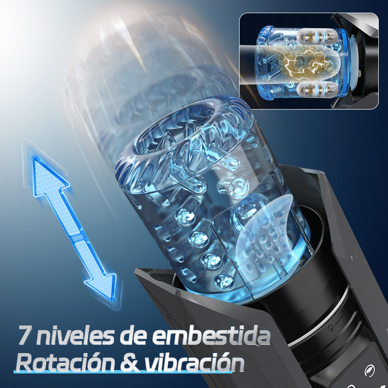 Mastúrbate 300 veces por minuto con 7 expansiones de frecuencia y rotación hasta la eyaculación.