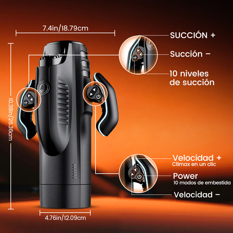 Toma con firmeza el agarre ergonómico y domina cada embestida telescópica profunda y potente + ritmo de succión codicioso.Extiende y hundes con precisión brutal, succiona y aferra con intensidad implacable — el mango te permite ajustar velocidad, profundidad y agresividad exactamente como lo deseas: provocación sensual lenta o final brutal y aporreador, todo a tu antojo.